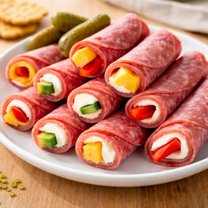 Gently roll the salami into a little tube.